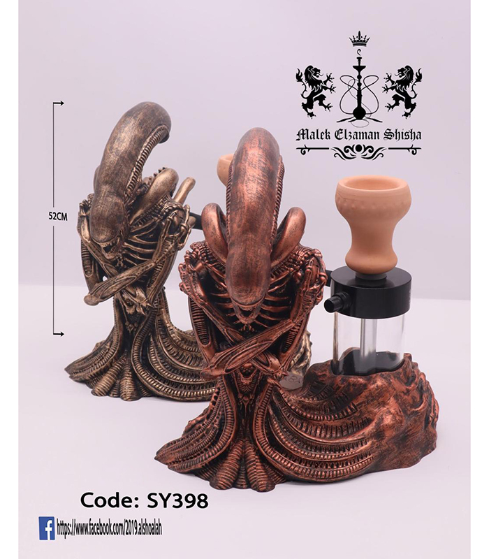 شيشة Alien بارتفاع 52 سم، تصميم مرعب بتفاصيل ثلاثية الأبعاد، قاعدة ريزن فاخرة وحجر فخار حراري، مثالية للديكور وهواة الطابع الخيالي.