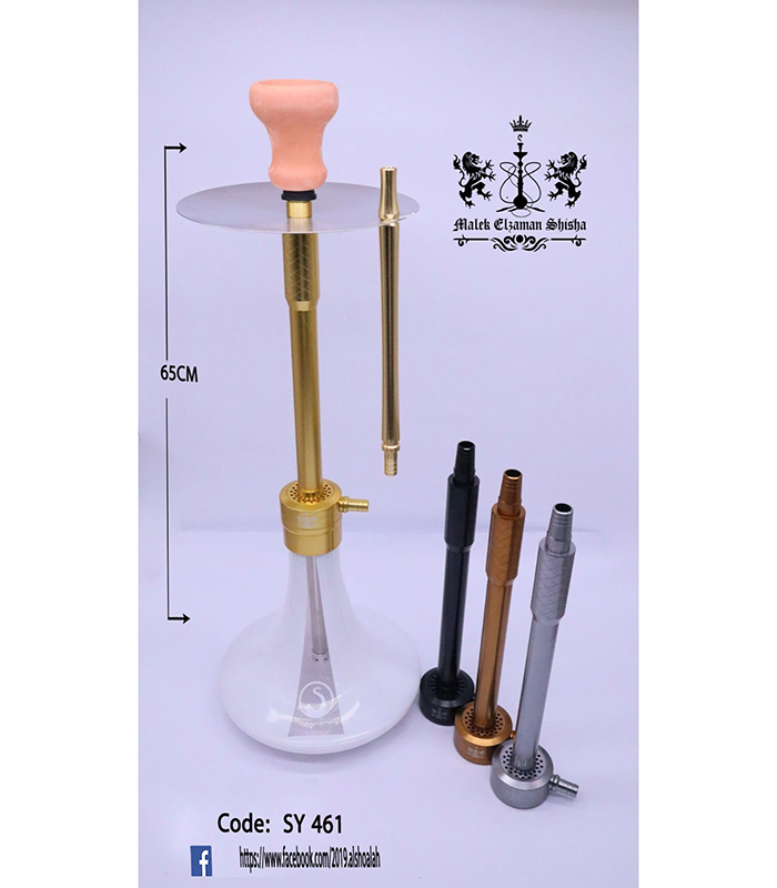 شيشة SY461 تجمع بين البساطة والفخامة في تصميم واحد مميز. بارتفاع 60 سم وهيكل معدني قوي بلون ذهبي أنيق يمنح الشيشة حضور واضح ومظهر فاخر.