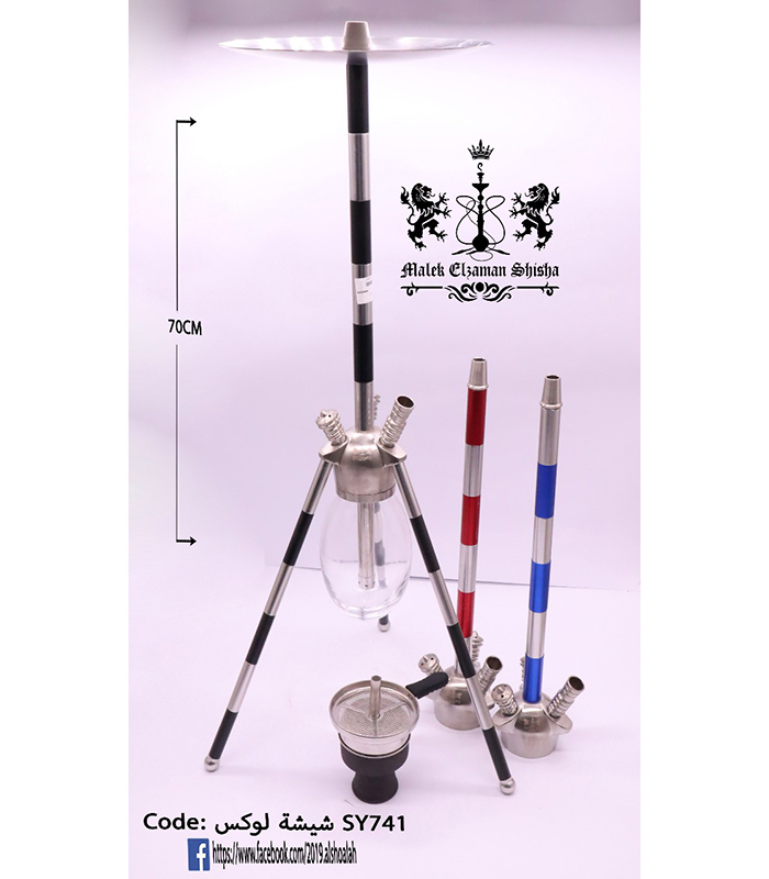 شيشة SY741 تصميم ثلاثي القاعدة بارتفاع 70 سم، خامات معدنية فاخرة، حجر إيمي، وعمود بألوان متعددة. شكل عصري وأداء قوي يناسب المنزل والكافيهات.