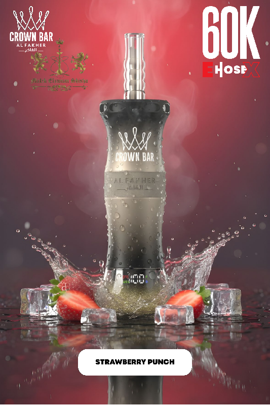 Al Fakher Crown Bar 60K E Hose 60000 Puffs strawberry punch \ عصير فراوله مثلج