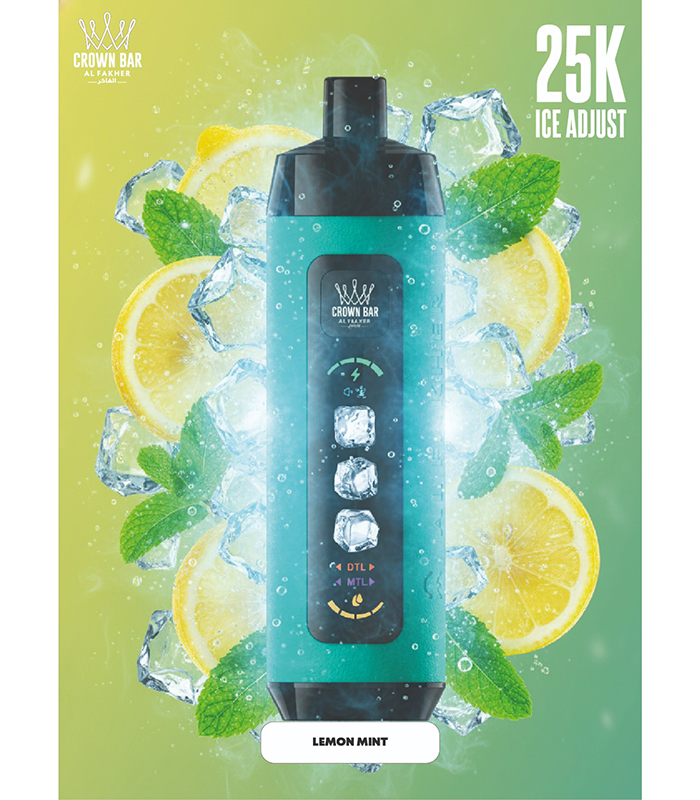 Crown Bar Al Fakher 25K Puff Ice Control Lemon Mint – كراون بار الفاخر 25 ألف بف أيس كنترول ليمون نعناع