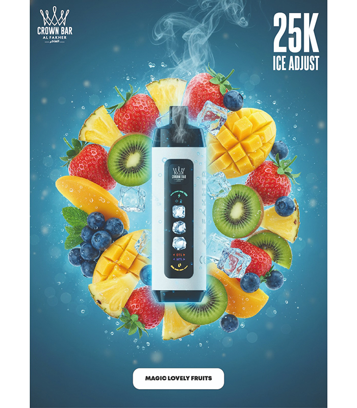 Crown Bar Al Fakher 25K Puff Ice Control Magic Love – كراون بار الفاخر 25 ألف بف أيس كنترول فراولة مانجو